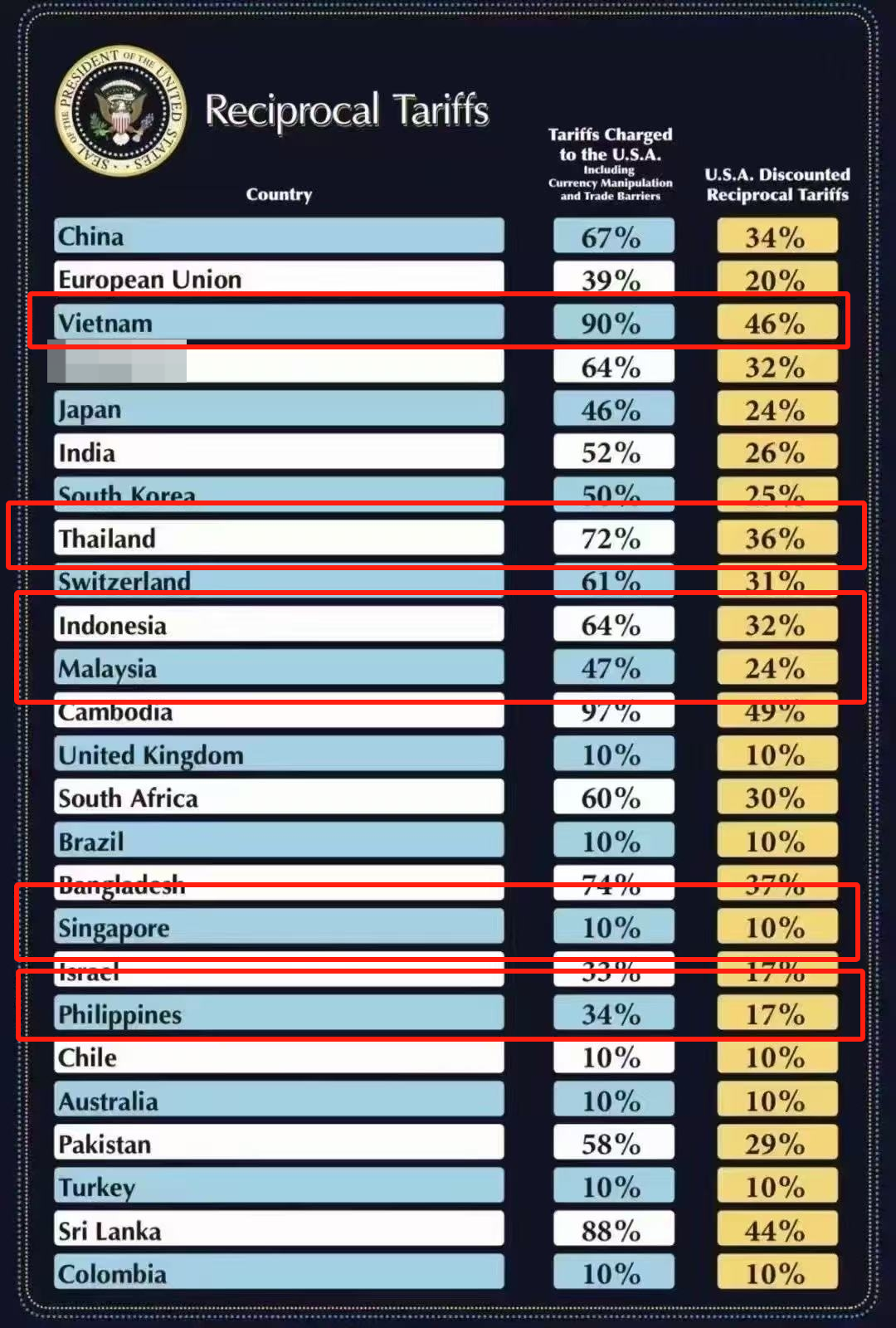 随着关税政策尘埃落定,一系列连锁反应接踵而至。此前,众多中国企业为避开美国高额关税,将部分产业转移至东南亚,借道东南亚出口美国。特朗普自然不会忽视这一关键枢纽,因此东南亚作为与中美贸易往来都较为密切的区域,不可避免地被卷入这场贸易风暴的漩涡之中。